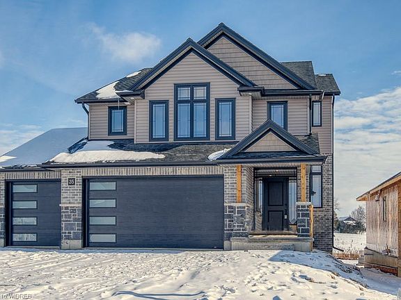 Welcome to 39 Peggy Ave in Mt.Elgin! This multi level home is full of Wow factor and highly desirable with young families. Some of the features they appreciate are perfect mud rm with built in cubbies off the 3 car garage, great rm with tall ceilings, gas fireplace, hardwood and open concept with lots of railings. Large kitchen with lots of cabinets, walk in pantry and island with breakfast nook all with quartz counter tops. 4 bedrooms including a large master bedroom and bath with tub, tiled shower and double sinks. Lower level is a walk out basement and this family room with 2nd gas fireplace is suitable for games area as well. This quiet little community has become very popular, come and see why for yourself. We have included all photos and links of previously built homes of this model and shown for illustration purposes of this Kensington model for your reference. This home is currently framed stage the successful buyer will be able to choose their colours from builders samples and move in June.