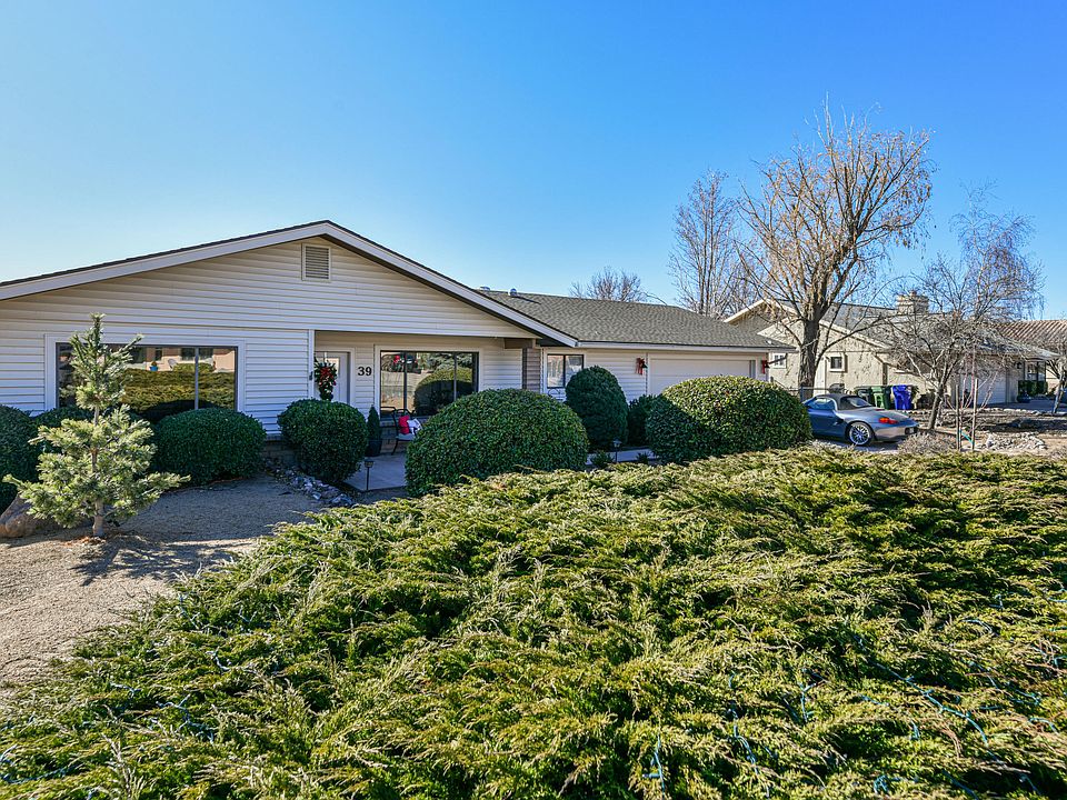 This beautiful 1700 square foot home is one to see. 3 bedrooms 2 baths and two family rooms. Tons of storage in the garage with large built in cabinets. Amazing views on the back patio of Antelope hills golf course, right by the pond. You wont be disappointed seeing this home.