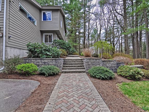 Nestled on a beautiful 1.5 acre wooded lot on a quiet cul de sac, this magnificent 3 bedroom (plus office) contemporary home boasts soaring ceilings, gleaming hardwood floors and plenty of space for the entire family. The open kitchen/dining room leads out to a large deck overlooking a private yard. Cozy living room/den with built ins. The family room/great room is perfect for family gatherings. Second floor features 3 good size bedroom and office or 4th bedroom. Other features include updated baths, a newer roof and heating system (6 months old), Central AC (4 years old), 2 car garage and more. Newly painted inside and out. The large basement can be finished for additional living space. Excellent location close to highways, shopping, Sharon train station and Town Center. WILL NOT LAST.
