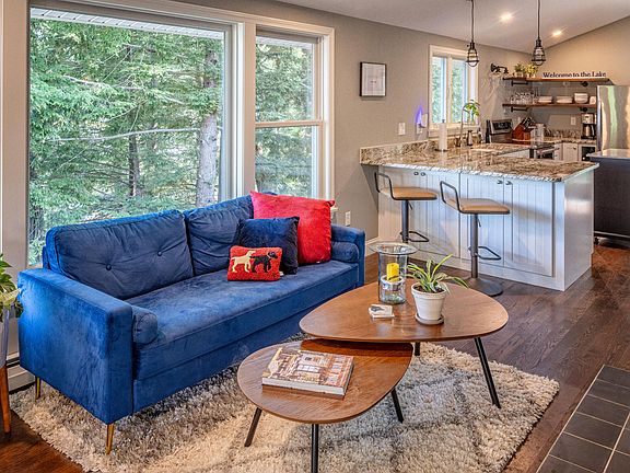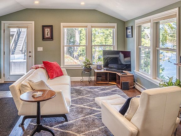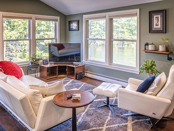 Ready for Lake Life? Enjoy waterfront living at its best on this beautiful property located on a peninsula with an impressive 200 feet of water frontage on Milton Three Ponds! This gorgeous home was totally renovated in 2018 and sits surrounded by amazing stone wall planters--truly a garden's delight! The home features extensive water views, 2 bedrooms and 2 baths, beautiful cabinetry, open shelving, granite countertops, wood and tile flooring, Andersen windows and Hunter Douglas blinds. The center of the open concept living space is a beautiful stone hearth with wood stove, the back of which creates an amazing feature wall in the guest bedroom. On the first floor you will also find a home office for your remote work needs. The space is climate controlled by the two newly installed mini-splits. And if the power goes out, not to worry, there's a whole house generator. The lower level features the primary suite with a beautiful limestone walk-in shower and a sliding glass door that leads out to a hardscape patio with impressive water views. The property has multiple stone patios, one of which boasts a 5 person hot-tub for your outdoor entertainment. The 2 story garage and pump house provide opportunity for future expanded living space. No problem if your furry friends are'nt swimmers, they will stay safe and dry in the fully enclosed electric fence. Conveniently located 40 minutes from Portsmouth and 1 1/2 hours to Boston. Welcome home!