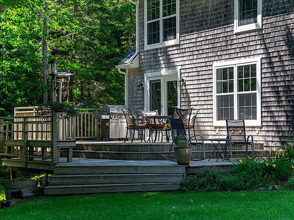 Classic Maine Cape with 3bd/2bath and two car attached garage located centrally on MDI on town maintained road with access to trails and conservation area. Light and bright yet tucked off the road with amazing yard, fire pit, play area and deck. Updated kitchen and baths make this home turnkey. Heat pumps for efficient heating and cooling, as well as propane fireplace off the living area. Option for a 1st floor bedroom or home office in addition to the 3 bedrooms on the second level. Large full unfinished basement for storage, home gym, or potential to finish off. Trails to Kittredge Brook Forest one of the largest tracts of open space on the island outside of Acadia National Park are easily accessed from this home.