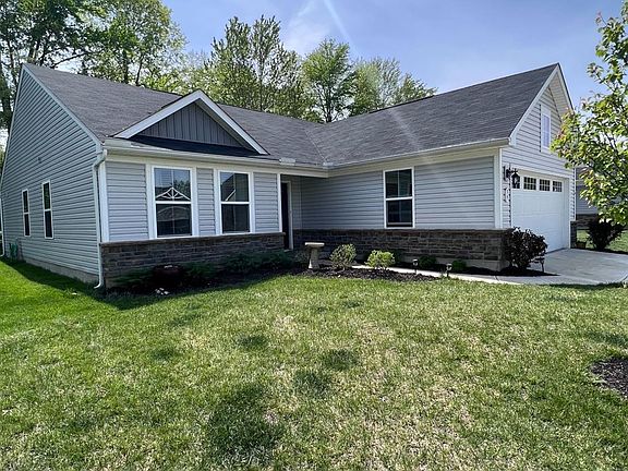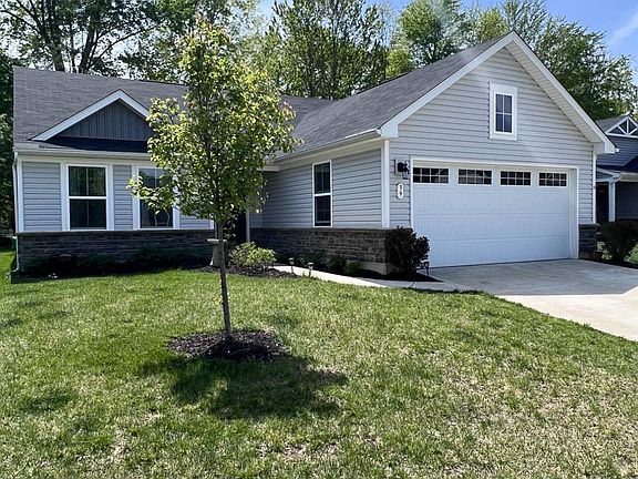 Stunning like new ranch home on quiet cul-de-sac with an open floorplan. This model style home includes upgraded cabinets and quartz countertops, large island, stainless steel appliances, gas range & furnace. The private primary suite includes a full walk-in closet, dual sink bathroom with large shower. The HOA creates a maintenance free home with mowing, trimming, landscape mulch, and snow removal included. Patio16x12 Microwave vented to outside, 2 car garage has extra storage area