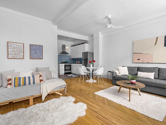 Easily accessible on the first floor, this home receives an abundance of light through its grand, oversized windows with custom wooden shutters and is complemented by 1920’s original details including beautiful herringbone floors. The spacious layout is perfect for entertaining, with enough room for a dining area, plus multiple living areas. It also allows for carving out space for a home office or second sleeping area. The renovated kitchen features all stainless steel appliances and porcelain tile floors, while the serene and stylish bathroom includes textured tiles, carrara marble flooring and Kohler fixtures. The king sized bedroom is a quiet retreat highlighted by original windows and a spacious closet.