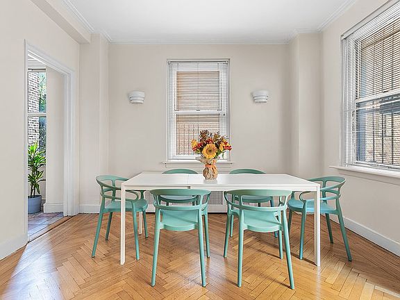 Enjoy a full-service lifestyle in one of Park Slope’s premiere buildings on Plaza Street West. This elegant pre-war home contains original details and generous spaces both inside and outside. You will fall in love with the flow of this apartment—gracious foyer with coat closet, open living and dining room with windows all around. The bedrooms and baths (one ensuite) are private and separate from the living space.