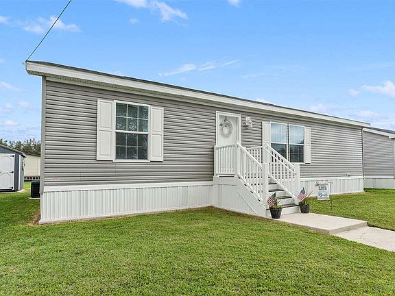 Affordable living in this 3 year old manufactured home centrally located in Rio Grande's at Grande Woods South manufactured home community. Easy access to shopping at Walmart, Lowe's Bed Bath & Beyond, Marshall's, Ross & more, dining, banks, plus it is just a 10 minute drive to Wildwood's beaches, boardwalks and entertainment or Historic Cape May. This would make a great vacation or year round home. The decor is bright and airy and is sure to please. The living room is spacious, has an electric fireplace and is open to the kitchen which has white cabinetry, stainless appliances and a center island with seating for 4, plus a custom built in for storage and a breakfast nook. The flooring throughout is a gray luxury laminate that is care-free and beautiful. At one end of the home is the master suite with a ceiling fan, a large closet and a full bathroom with a 2-seat stall shower with glass doors. The opposute end of the house has a linen closet, 2 bedrooms with large closets and a full bathroom. The laundry room is just off the kitchen and leads to the newly added rear 14' x 20' composite deck that stays cool to your feet. There is new storage shed in the rear as well. This home sits on an oversized lot offering a nice front grassy area. The monthly lot rent of $534. includes water, sewer, trash removal, recycle, snow removal, use of the community in-ground pool, clubhouse, pool side restrooms, showers, picnic area, catch & release fish pond and on-site 24/7 maintenance and management. One small pet permitted per unit. Please note that the Buyer will be subject to an approval application from the Management office. This home will be sold furnished less personal items, dishes, pots & pans, etc. kitchen items.