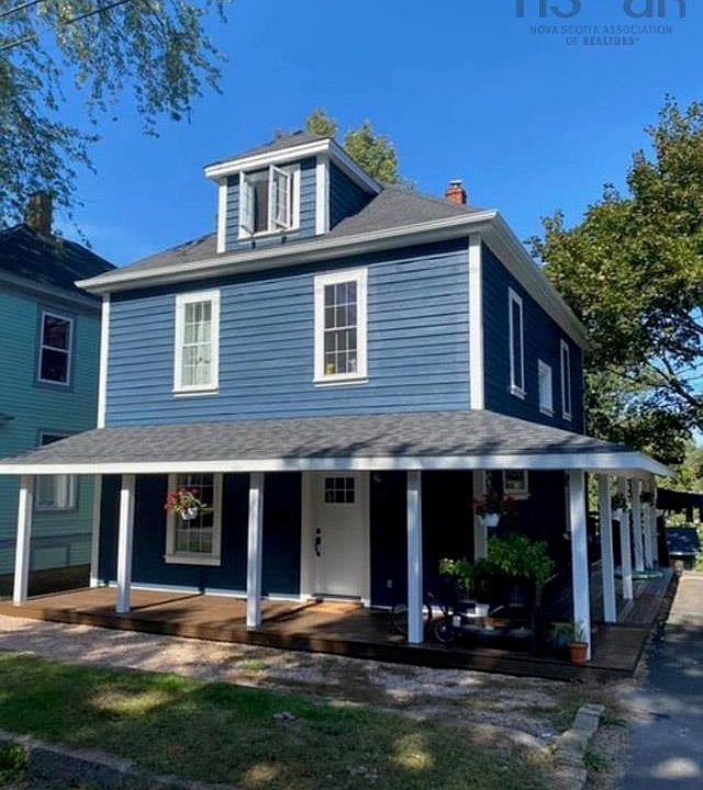 This beautiful Bridgewater home was built in the early 1900’s and has been lovingly renovated over the last couple of years. It is situated in a quiet neighbourhood, a block away from the LaHave River with its waterfront park for walking, relaxing and just enjoying watching the boats on the River. The house has a full basement with walkout access which can be developed for additional living space if desired. The first floor is open concept with a spacious well laid out kitchen, dining and living rooms and a large laundry room and bathroom. There is a comfortable wrap-around deck on the front and side of the house and another lovely balcony overlooking the garden at the back of the house. Four large bedrooms on the second floor with a large bathroom and the third floor has a wonderful large open space which is currently used as a bedroom and study area. The house is completely insulated and incredibly quiet. There is storage galore and as an extra bonus there is a brand-new studio 18 x 24 (?) which is currently used as a photography studio but could be used as a small shop as it is commercially zoned.