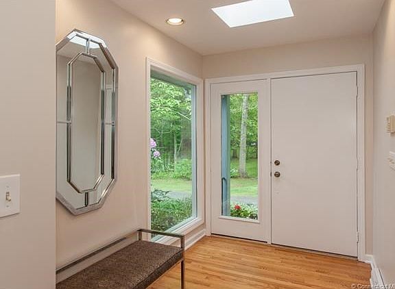 One step inside and you will fall in love with this fresh, sophisticated, lovingly maintained ranch. The cheerful foyer will lead you to a spacious living room with fireplace and large picture window with plenty of space to entertain. This home boasts a large formal dining room and comfortable family room with vaulted ceilings, skylights, and fireplace. A must-see bright and beautifully remodeled eat-in kitchen with Carrera marble countertops and backsplash, high-end SS appliances, vaulted ceiling and skylights. Both the kitchen and family room have French doors/sliders that open to a deck that overlooks a private backyard. Newly refinished hard-wood floors throughout along with complete interior and exterior painting! Large master bedroom with double closets and a whirlpool tub in the master bath, 3 good sized bedrooms and a full bathroom complete the main level. The walk-out lower level boasts a large Recreation room with a gorgeous brick fireplace, plus an additional room for a home office, Library/Den or In-law suite along with an updated full bathroom. Other features include: Central -Air, Security system, invisible dog fence and a 2 car garage on a beautiful 1.6 acre site in sought after neighborhood. There is nothing to do but move in and enjoy! Convenient access to Downtown New Haven, Yale and Route 15.