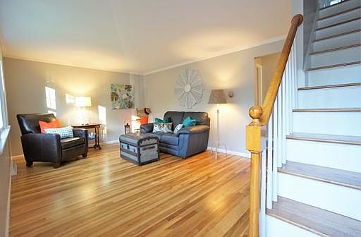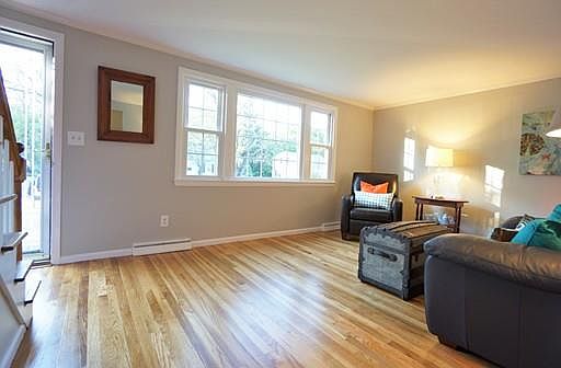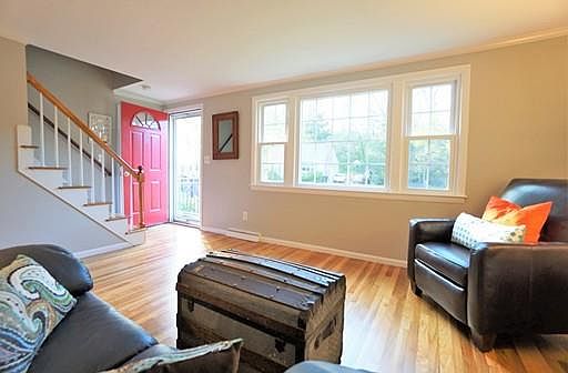 Charming 3-4 BR / 2 Full Bath home back on market recently due to buyer lender unable to provide financing. Freshly painted interior with gleaming hardwood floors and vinyl windows throughout. The fabulous kitchen with custom cabinetry and Corian counter tops is open to a large family room with wood stove & access to deck, perfect for family gatherings. There is a first floor bedroom and the dining room has a closet and could be used as a 4th bedroom. The second floor features two huge bedrooms, w hardwood floors and a full bath. There is an open unfinished basement perfect for future expansion. The exterior boasts a spacious composite deck, private, treed yard and aluminum siding for easy maintenance. This is a one owner, lovingly cared for home with sought after, public water and sewer and natural gas. It is on a cul-de-sac street with sidewalks to the center of town. Award winning school system and a quick closing possible.