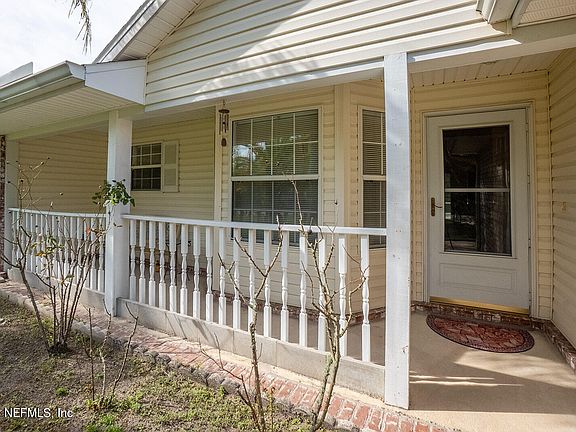 This charming, well-maintained home, built by Adams Homes in 2003 needs a new family. It has been gently used and greatly loved. The split 3/2 floor plan provides privacy, and the open layout with vaulted ceiling adds volume. Linger after breakfast at the eat-in kitchen area with a bay window. Then head to the back screened porch to claim your spot for countless hours of unwinding and nature watching, with ample privacy made possible by a fully-hedged back yard. The 10' x 12' shed will house your tools and toys. All appliances inside convey to the new buyer. Freezer and refrigerator in garage do not convey. NEW ROOF INSTALLED MAY 1, 2024! Carrier Energy Star A/C System was put in place in 2022. Garage has a utility sink, shelving, and a lateral sliding screen door. You will appreciate the rain gutters and the irrigation system that is on a private well. The beach is always calling, and you will only be 15 minutes away. Nearby are the LeHigh Trail & 2 golf courses.