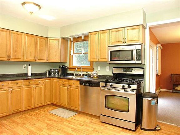 Move right into this well maintained spacious 4 bedroom, 2 1/2 bath ranch. Hardwood floors in all bedrooms. Updated kitchen with stainless appliances. Finished basement with bright Great Room w/6 skylights, rec room (11'x30'), other finished room (11'x 23'), laundry room with utility sink and plenty of extra storage space. The detached 1 1/2 oversize garage was built in 2011. Private backyard and new deck built in 2013. Duct work for central air and newer windows.