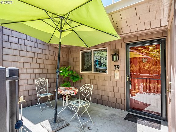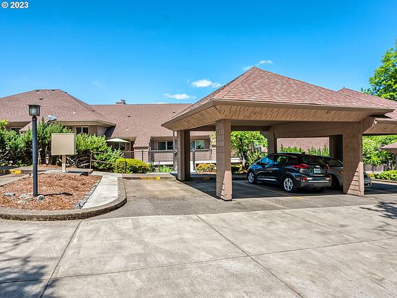 Step into this charming single level, South Eugene condo located in a park-like setting with BEAUTIFUL VIEWS!! Home features easy access with no stairs from your covered parking space directly to your front door. Living room is spacious with a cozy wood-burning fireplace and sliding door that leads to the covered deck. Kitchen features tile floor and a breakfast bar. All kitchen appliances are included. Owner's Suite is light and bright with a private bathroom and great views of Matthew Knight Arena and Hayward Field. Lots of storage space throughout the home plus an additional storage unit! Enjoy the sunrises and mountain views from your private deck!