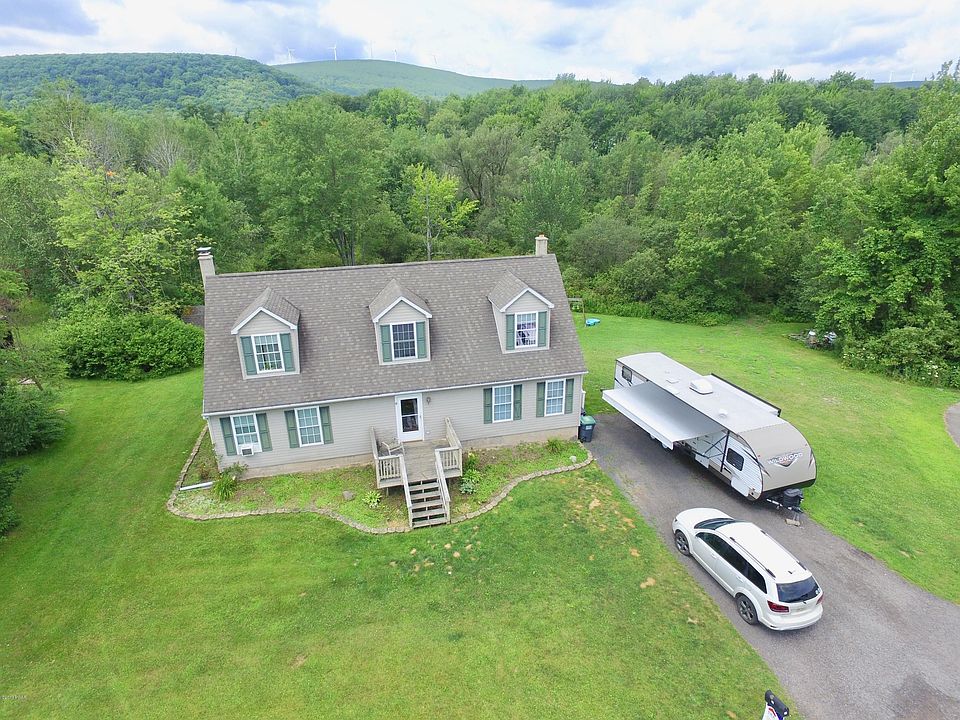 Peace, privacy and tranquility await you at this custom Cape settled on over 3 acres of thoughtfully arranged Landscapes. Located at the end of the Cul-de-sac which is also a part of the property, this move-in ready custom 4 bed 3 bath home was built with family in mind. Hard wood floors span the main level, including the Master Bedroom with walk in closet. Bright kitchen with attched dining area also gives you access to the back deck, over looking the expanse of the property and the windmills of Waymart wind farm. 2 large bedrooms upstairs with full bath and 2-door Hallway storage area. Lower level custom built Man cave with full bar and storage area accessible thorugh Bilko doors in backyard. Private camping area, back shed w/electric, USB/safety outlets and much more included!, Beds Description: Primary1st, Beds Description: 2+BED 2nd, Baths: 1 Bath Level 1, Baths: 1 Bath Level 2, Baths: 1/2 Bath Lev 1, Eating Area: Dining Area, Eating Area: Modern KT, Beds Description: 1Bed1st