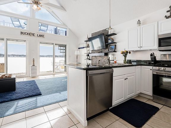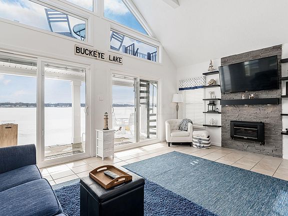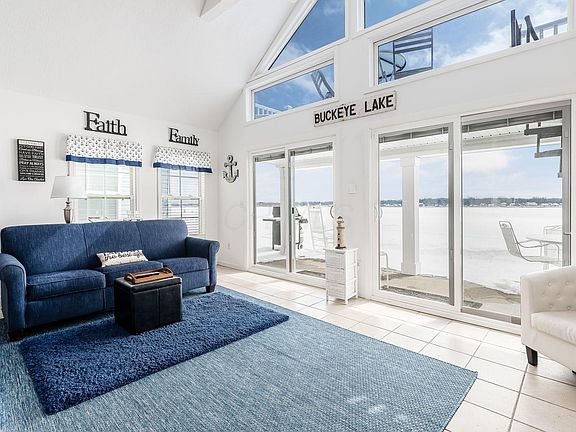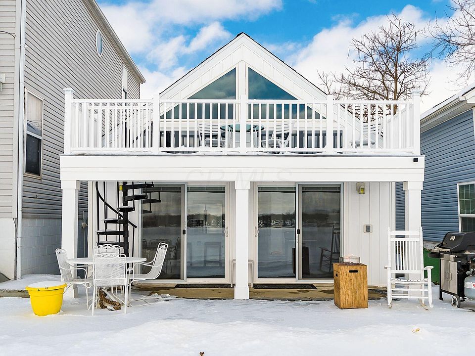 Welcome to this lovely lake front cottage on the North Bank of Buckeye Lake! Beautiful views from thewall of windows & new patio doors in the spacious vaulted Great Room. This 1930's cottage was rebuiltfrom the foundation up in 2010 & has many recent updates & improvements including a loft/bunkroom with spiral stairs, gas run to the home w/ new gas fireplace, exterior deck/balcony overlook withspiral stairs for panoramic views of the lake, dock (to be installed in March or April), additional cabinets& granite tops, attic storage, encapsulation of the crawl space, new paint throughout, low maintenancestorage shed & more! Extra parking for guests close by. Located in a premium part of the lake within a short walking distance to the Yacht Club, Boat Yard, & Brewery & N. Shore Coff