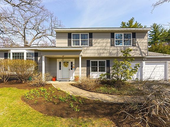 Nestled in a sought-after Holliston neighborhood, this charming New York Colonial blends welcoming interiors with serene outdoor spaces. Step into the inviting living room, where gleaming hardwood floors and natural light from the bay window create a warm ambiance. The eat-in kitchen features new Quartz countertops, ample cabinet space, and a stylish tile backsplash. Adjacent to the kitchen, you'll find a large pantry closet, mudroom,laundry area, + updated full bath with/tile surround shower. The family room, perfect for casual gatherings, opens to the spacious back yard with beautiful perennial gardens. Upstairs, four bedrooms w/hardwood floors await, complemented by a remodeled spa-like bathroom w/double vanity + tiled bath/shower. Outside, the home boasts a large level fenced yard, two-car garage, perennial garden,patio, and convenient storage sheds. Updates throughout! -Heating(2023);Kitchen Updates(2023);Bath(2020),Roof(2015)Windows(2013-2018).See attached list for more!
