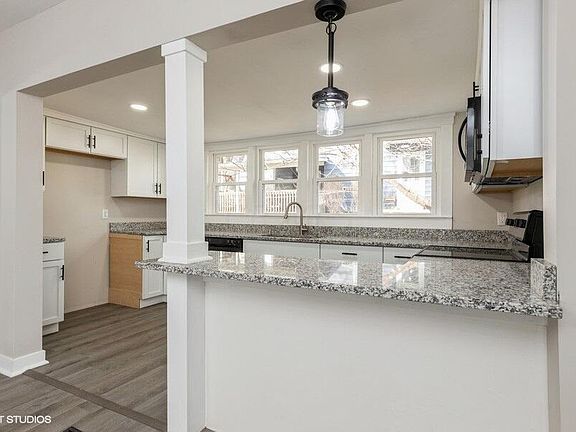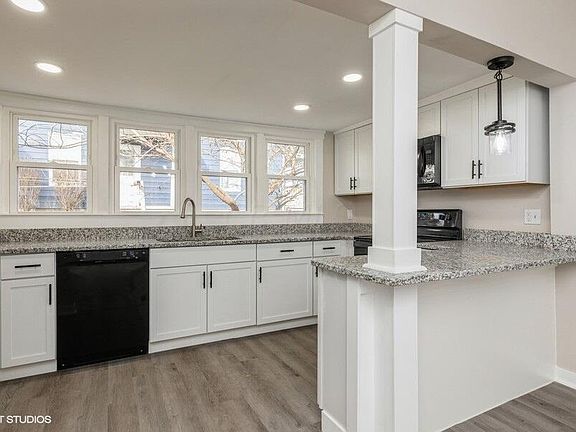 2 story 3 bedroom, 1 bath home completely remodeled! New Furnace, Central A/C, hot water tank. All new flooring, vinyl plank and carpet. Updated kitchen, new granite countertops, new dishwasher, oven/stove, microwave hood vent. Open kitchen concept to dining room. Main floor laundry, could be an office combo. Main floor bathroom completely updated. One main floor bedroom, two bedrooms on second floor. New metal roof, side screened-in sunporch. Large 2 car detached garage!