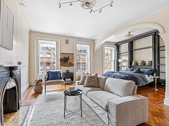 Delivered vacant, the home is currently subdivided into a four-family from its original single-family layout. This 7-bedroom, 5-bath home has 10 fireplaces, soaring ceilings and original details throughout. Enjoy the 53-foot deep private garden.