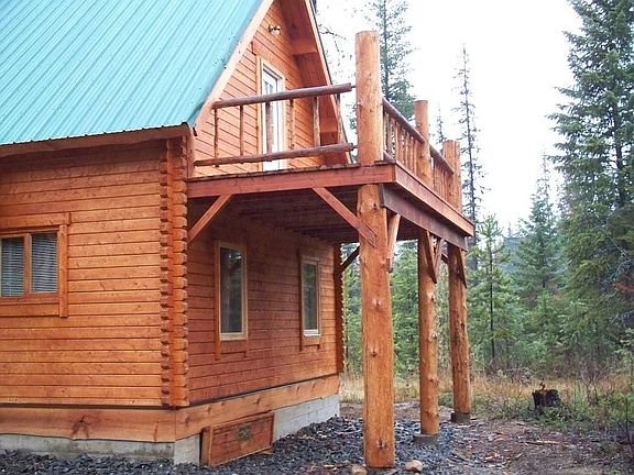 Home is an 1100 square foot Conestoga Log Cabin that was completed this past summer. The home has 2 bedrooms and 2 bathrooms with radiant floor heating in bathrooms, a pellet stove, a 45,000 BTU central heater, and tankless water heater. The home sits on a level approx. .75 acre lot with easy access from front and back of lot. The home also has a detached 1200 square foot garage with an oversized 16 X 10 foot door. Near golf course, shops and dining, short drive to launch boat, and snowmobile and ATV from your garage. Neighborhood Description The neighbor hood is nice and people are friendly. You can walk to almost everything and there is a nice mix of full and part time people who live in the area. Nice mountain views from front porch.