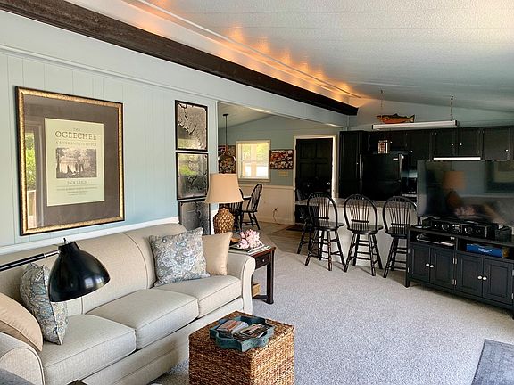 SUWANNEE RIVER WATERFRONT HOME - 2 lots and a bonus building. This home is truly waterfront with a deck that goes right from your front door to the deep, fresh water canal. The home has recently had a beautiful remodel and is waiting for you. Inside is a large open floor plan, including custom cabinetry, a breakfast bar, dining area and a sliding glass door overlooking the water, spacious bedrooms and accent lighting. In addition to the home, a small building on the property with bathroom that could be remodeled into a small apartment or storage. Schedule your private tour today. Home is being sold fully furnished and move-in ready! Come enjoy the Suwannee lifestyle and all that it offers, from the river to the Gulf of Mexico!