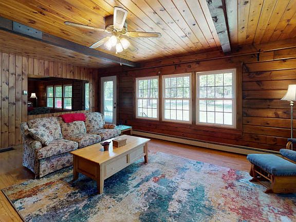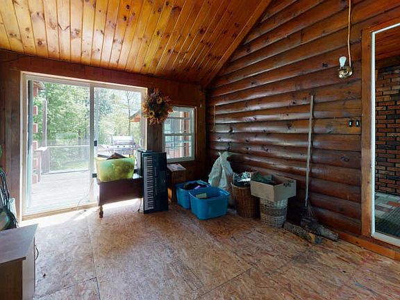 Do you want a log home in Maine? This 1981 ranch is just the ticket! Set on 1.4 acres it has 3 bedrooms, 2 bathrooms living room, dining area and finished basement space for a family room, workout room or perhaps an office. There is an attached two car garage and a detached 2 bay, 2 story garage on the far side of the easement driveway. You'll love the screened back porch and back deck for relaxing or entertaining. Arrange your private showing before you miss out.