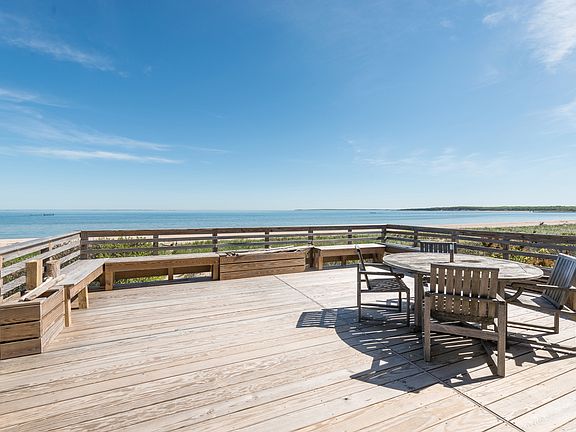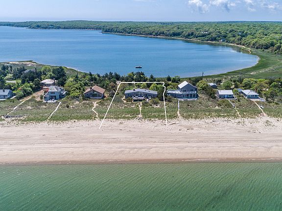 With wide open views of Gardiners Bay, this classic beach house is located on one of the best and most private bay beaches in the Hamptons. The house features four bedrooms, a nice size kitchen, a large living room with glass doors that open onto the large deck with a pathway that leads down to the beach. The property has 100' of sandy beachfront.