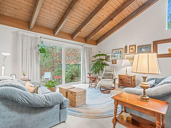 Falmouth Port, One floor living (D) Unit in a very sought after Condominium Community. This community has it all: situated on Great Pond, a saltwater pool, a new clubhouse, tennis, pickle ball, two docks, kayak racks, and a walking trail. This 2-bedroom, 2-bath boasts an enormous living/dining room with cathedral ceilings where wonderful natural light fills the room, plus sliders to outside. The large country kitchen offers a fireplace, built-in shelving, breakfast bar, sitting or breakfast area, wood floors, and a slider to your private deck and patio for summer entertaining. The oversized main bedroom features two large closets and a private bath. The guest room has access to a private bathroom. A large bonus room on the lower level is not included in the sq. footage. A nice deck off the kitchen leads to a large patio with lots of privacy. All the big items have been taken care of, including a newer furnace, hot water heater, new windows and sliders, and interior paint.