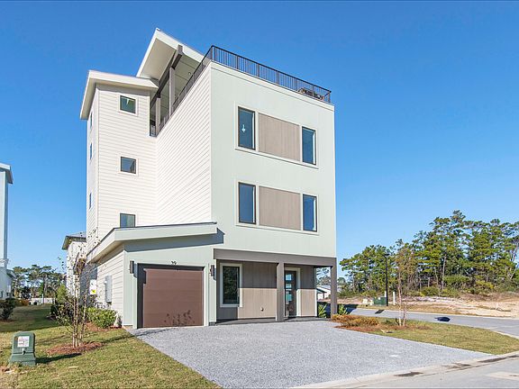 QUICK MOVE IN!! This home comes fully furnished & turnkey ready! Please ask about rates starting as low as 5.75%. Welcome to Wildwood at Inlet Beach, where modern elegance meets coastal charm. Crafted by Bluscape Homes, this brand-new South Walton community seamlessly blends luxury with beach living. Perfectly positioned near top-tier dining, shopping, and entertainment, you're just moments from 30 Avenue, Rosemary Beach, Lake Powell, Camp Helen Gulf Front State Park, and the largest regional beach access in South Walton. Everything you need for an exceptional coastal lifestyle is right at your doorstep. The pedestrian underpass on Hwy 98 offers safe & easy access to all the wonders of 30A without crossing the highway. Introducing the SkyBlu, Wildwood's premier floor plan, featuring a breathtaking rooftop deck that adds 1,000 square feet of outdoor living space and panoramic views in every direction. This thoughtfully designed home boasts 6 king-sized en suite bedrooms, two dens, and an optional elevator that whisks you to your rooftop oasis, perfect for unforgettable sunsets. The deck is hot tub-ready with reinforced construction and offers the option for a luxury outdoor kitchen. Inside, enjoy three levels of sophisticated living with high-end finishes like Quartz countertops, GE Profile appliances, stylish flooring, and designer lighting. Additional highlights include a garage and generous front parking. Make this coastal paradise yours and start living the good life today!