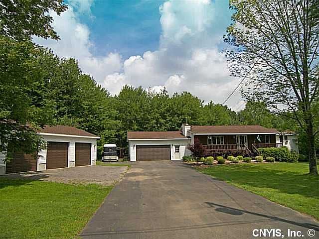 **The Perfect Setting and the Perfect Home that has Everything!** Yes Over 2 Acres, on a Quiet Rural Road. The House has an Oversized 2 Car Attached Garage Plus a 24' x 36' Detached 3 Car Garage Insulated w/100 amp Power. PLUS a 12' x 24' Pole Barn with Wood Floors & Electricity. Fantastic Home Large Kitchen, with Plenty of Cabinet Space and Granite Counter Tops. Vaulted Ceilings and Skylight. Spacious Dining area. Huge Master Bedroom with Double Closets & Master Bath. 1st Floor Laundry and Mudroom. Lower Level is a walk-out with a Familyroom, Full Bath & Bedroom. Total Taxes w/ STAR $4534