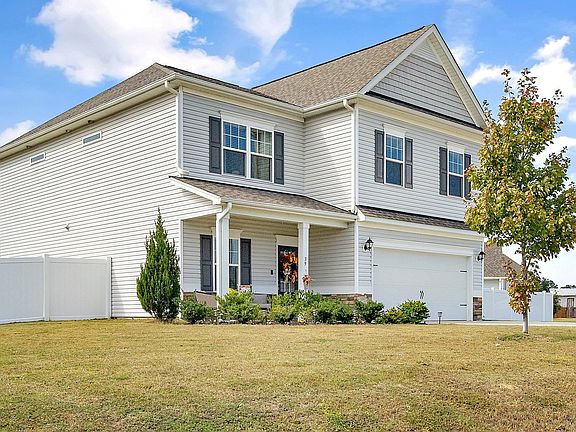 MOTIVATED SELLERS and HUGE PRICE REDUCTION! Come see this beautiful 4 bedroom/2.5 bathroom home in Sauls Farm! Convenient to I-40, 42, and soon to be 540! Just 20 minutes from Downtown Raleigh. Huge backyard with custom privacy fence (2020). A beautiful open concept living area and kitchen boasting gray cabinets, granite countertops, stainless steel appliances, and a large island, perfect for hosting. Gas fireplace in living room. HUGE Primary suite with his & hers walk-in closet. Don’t miss out!