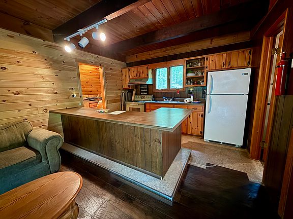 Cozy Adirondack retreat situated on a private wooded 1 acre lot in Ausable Acres. Ideal as a vacation, second, or primary home. Features knotty pine ceilings/walls, wood floors, updated bath, large wraparound porch, & open-concept living w/kitchen island & pantry/utility room. Some finishing touches needed—extra flooring materials included. Knotty pine & wood finishes create a cozy cabin feel. SS chimney cleaned, ready for pellet/woodstove. Enjoy Ausable river access (fly fishing) & use of Lake Eaton, playgrounds, tennis courts, walking/hiking trails & much more. Just 30 min to Lake Placid and Keene Valley, 17 to Whiteface. Spectrum cable/internet available. Stamped plans for addition & septic included. Adventure and serenity await! Adventure, relaxation, and Adirondack charm all in one.