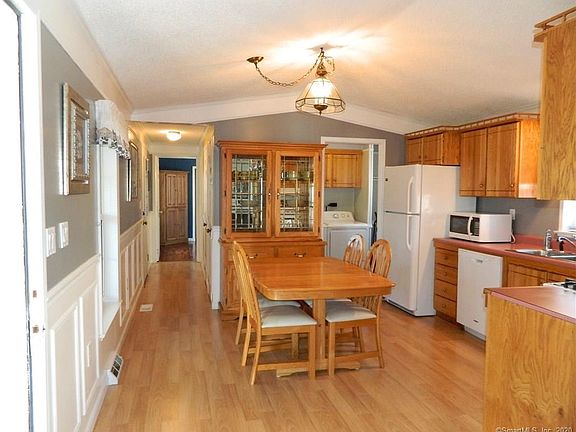Lovely newer (1991 mobile home (14x70 located to the back of the park with a large 19 x 8 enclosed porch with tile floor and plenty of natural light shining through all the windows. The interior of the home offers a nice sized living room, eat-in kitchen with all newer appliances (most less than 3 years young and a laundry room off the kitchen that offers extra storage and new washer & dryer appliances. There are two bedrooms; one at the front of the home and one at the back of the home with double closets and a corner cabinet. The full bath is nicely updated with walk-in shower, vanity has storage space and linen cabinets too. the lot is nicely landscaped and a Carefree shed for outdoor storage. Mechanicals are in good shape. Estate sale everything conveys in As-Is condition. Sale subject to Probate Court Approval. Buyer must be park approved. Lot fee is $531/mn