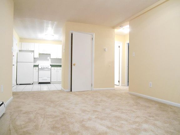 Apartment features brand new wall to wall carpet, brand new bathroom with marble floors, and renovated kitchen with dishwasher and disposal. Large living room with built in AC, one plus sized bedroom and one smaller bedroom. Heat, hot water and off street parking included.