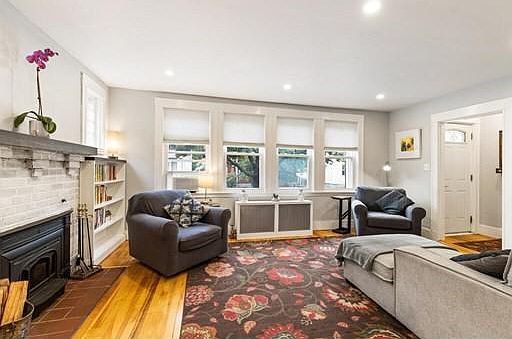 Located on a quaint, tree-lined street in the heart of Arlington. A short walk to gourmet restaurants, trendy coffee shops, Spy Pond, the Minuteman Bike Path & all the great amenities of Arlington Center. This delightful home offers an oversized living room with maple flooring, recessed lighting & a wood burning fireplace. Entertain your guests in a formal dining room with maple flooring & a built-in hutch. The kitchen is appointed with stainless steel appliances, plenty of counter space for the home chef & a gas stove. Enjoy direct access to a large *exclusive use deck, which is like a second living room, overlooking a grassy fenced-in backyard. Dont miss the fantastic office/workshop area on the lower level for your at home zoom meetings or creative space. In-unit laundry on the main level & off street, driveway parking! Pet friendly building.