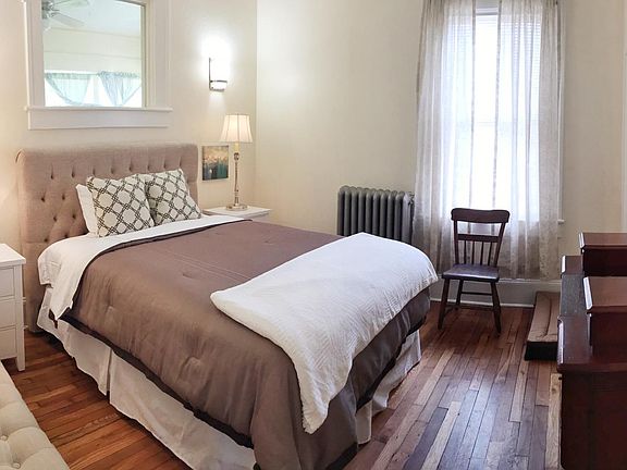 Quintessential 1920's arts and crafts bungalow. This cottage, which backs up to huge wooded acreage, offers pastoral quiet in the very heart of Asheville. Minutes away from downtown and all of Asheville's amenities, the house remains secluded and peaceful. The restful front porch and gardens are a favorite spot to stretch out for quiet time but you are never more than a few minutes away from food, music, shopping and business. Just 1/4-1/2 mile from Biltmore Village, Biltmore House and Gardens, South Slope and Downtown. Kenilworth, where the historic bungalow is located, is a residential community on the very edge of Asheville's business and entertainment nexus. There is proximity to everything you need, and a quiet get-away when you finish. If you happen to be a medical person, you will be 2 blocks from the hospital. Hiking and biking are close and your family canine is welcome. Renter pays for all utilities. No smoking on property. Owner will have property mowed. There will be no use of basement and no storage of large personal items on property. No parties or large gatherings. All overnight guests must be approved by owner.