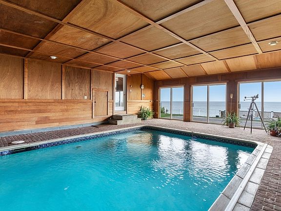 Welcome to your dream coastal retreat! This Contemporary 4 bedroom, 3 full bathroom home offers the ultimate in oceanfront living. With private stairs leading directly to the beach, you can enjoy the breathtaking ocean views and the soothing sounds of the waves right from your doorstep. Step inside to discover a spacious interior perfect for relaxing or entertaining. Hardwood floors, granite kitchen countertops, and panoramic ocean views along with an indoor heated pool with sliders offering the best of indoor/outdoor living.Outside the expansive grounds offer ample space for outdoor gatherings, al fresco dining, and enjoying watching the sunrise over the water. Located on just under half an acre on a dead end street, this property provides the perfect balance of privacy and convenience. A 3 bay attached garage completes this oceanfront gem and adds to this piece of paradise.