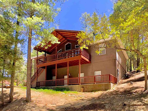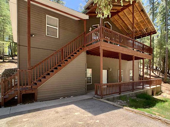 Home with super floorplan is packed with great spaces including spacious 26'x 18.5' central living with vaulted wood ceilings. Kitchen with walk-in pantry & laundry room sit behind living. Master suite is on one side of living area and 2 more bedrooms & bath are on other side. Home is mostly on one level with walk-out den & bedroom #4 plus bath on garage level. Covered deck spans the front with views, lower covered patio. Oversized garage has workshop space. Paved drive. Community pond, courts, gated.