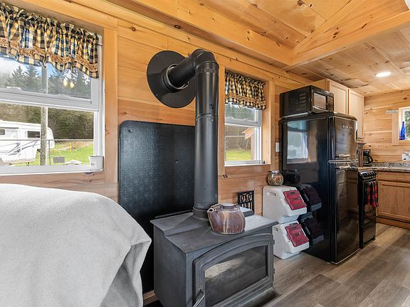 Rare opportunity to own a 5.09- acre parcel in the Maple Ridge Subdivision with breathtaking mountain views. This one bedroom home is bright and airy, with high ceilings and a cozy wood stove, creating an ambiance year-round. Complete with convenient amenities such as a washer and dryer, as well as a luxurious soaking tub. This home offers the perfect blend of comfort and relaxation. Whether you are seeking a home away from home or a serene escape from the hustle and bustle, this is your ideal sanctuary. This 15-lot subdivision has a low cost road association fee of $450 for the year, for the road to be plowed and maintained. This parcel of land is perfect for someone who likes to snowmobile, ATV or hike. There are several hiking trails nearby for outdoor enthusiasts. Great location; as it is only 5 minutes away from downtown Colebrook, and less than 10 minutes from the hospital. Showings by appointment only, please do not drive up without an appointment. Please reference land listing mls #4985705 . Seller will sell land and home together or just the land.