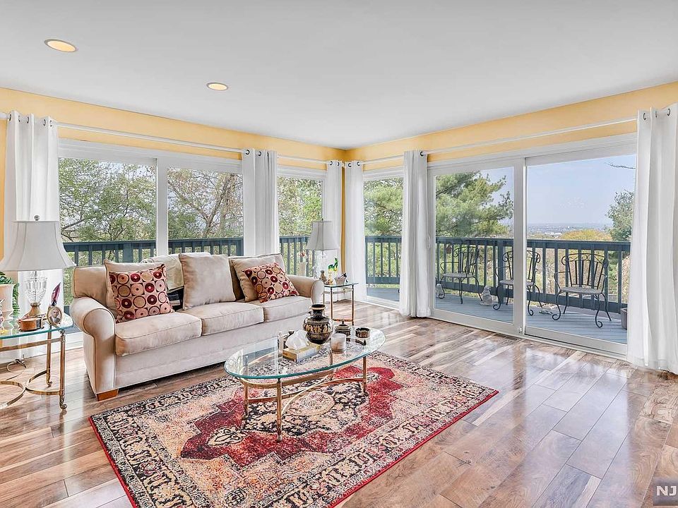 Located between Great Notch Reservation and Rifle Camp Park, this charming townhome is updated and ready for your next steps. Enter into an elegant foyer and take the elevator up to an entertainer's dream living and dining room, with amazing north/east views from floor to ceiling windows, wood-burning fireplace, wood floors + wraparound deck! The generous primary suite is an oasis with walk-in closet, separate shower+tub, heated floors. Coffee in the cheerful gourmet eat-in kitchen with higher end appliances, custom shades and breakfast bar, is the perfect start to the day, with city views and light streaming in. Parking and storage headaches disappear with an oversized two-car garage and storage room. With convenient dining, culture and shopping options, highways + express bus service to NYC, 39 Skyview gives you access to everything! Whether you're hosting gatherings or enjoying a quiet moment alone, this townhome offers the ideal blend of comfort and convenience.