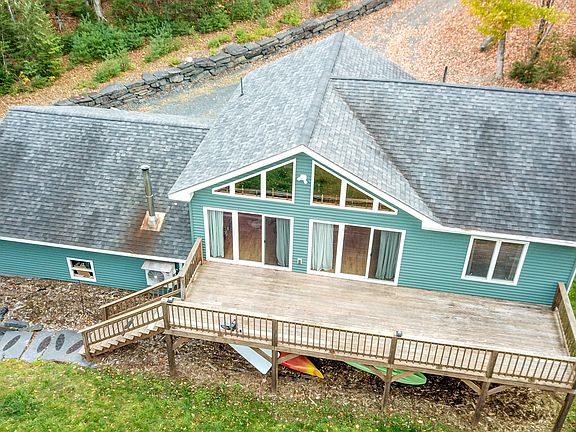 Don't miss this custom built 2 bed 1 bath lakefront home on the edge of Monson Pond. Constructed in 2008, this year round home on over 2 acres offers a magnificent cathedral ceiling with knotty pine interior & details, recessed lights, towering windows overlooking the 8x36 foot deck & water, and more! The windows & sliding glass doors along the front allow for plenty of natural light and scenic views from nearly every spot in the room, plus the master bedroom. Lots of room for a formal dining set and/or large living room arrangement, with direct access to the deck for the warmer months. The basement is almost complete with an additional two bedrooms and full bath ready for finishing touches. The finished area downstairs leads directly into the heated 2 bay garage/workshop with utilities. The home has vinyl siding for easy maintenance plus an authentic slate driveway leading all the way down to the front yard for easy boat access. Beautiful slate rock walls line the pathway to the 210 feet of lake frontage. A couple of access points already exist between the mature mix of hardwood & softwood for year round lake recreation including boating, snowmobiling, and fishing. Plenty of storage below the deck for recreational gear & toys. Less than 5 minutes to town for daily amenities, and less than 30 minutes to surrounding towns including Dover Foxcroft & Greenville. About 1 hour 20 minutes to Waterville, Bangor, and the International Airport.
