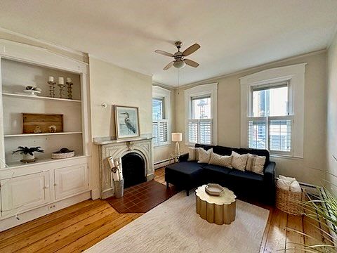 Gas Light District 1BD/1BA in a two-unit building, just one block from the Monument. This dramatic floor-thru condo with a 93 Walk Score features original detail, modern kitchen, towering ceilings and exclusive use of an enclosed patio. Step inside this charming home into the formal living room, with gleaming wide-pine floor, decorative mantel and two large windows facing Soley Street. Through original pocket doors, find the formal dining room, which can also host a desk for WFH. The sunny kitchen features granite counters, white shaker cabinets and space for a high-top table. A full bathroom and bedroom with closet round off the floor plan. Laundry and ample storage one flight down. This is an excellent opportunity for a savvy end-user or investor who values owning property on one of the most markable streets in Charlestown. Also offered in conjunction with #2 for $1,898,000. Offers, if any, will be reviewed Monday 5pm.