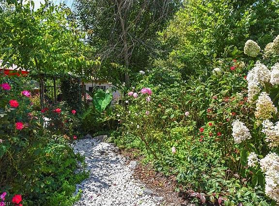 Gorgeous inside and out! You will fall in love with the landscaping, rock work & special touches. Features include ceramic tile, bamboo flooring, rock fireplace with built-ins, large master bedroom/bath, large living spaces plus dining area & eat-in kitchen. The back yard is unique with a very private space for entertaining, relaxing or getting away from it all. You'll be surrounded by lovely flowers & numerous fruit trees. Fenced yard, chicken coop, extra outbuilding too, built-in grill.