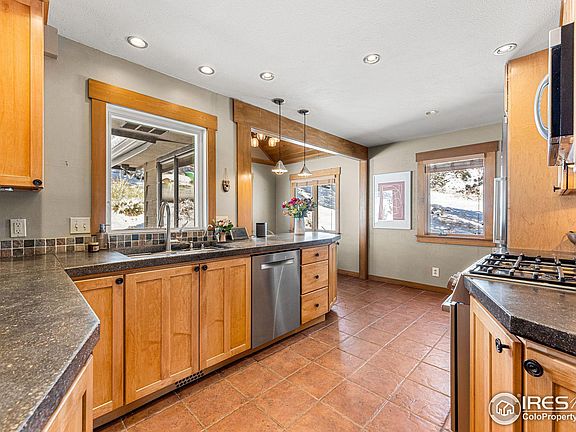 Open 2/19 12-2. Mountain retreat close to Boulder's culture & amenities! This Boulder Heights 3 bed/2 bath home w/ tranquil views to infinity is perfect for those interested in "dipping their toes" in mountain life. Favorite features include oak floors, new Bosch kitchen appliances (2020), hands-free kitchen faucet, 2 fireplaces & AMPLE storage. Newly remodeled main bath with designer tiles, spa features, deep soaking tub & Rejuvenation fixtures will not disappoint (2022). Open your eyes to watch beautiful sunrises from the primary bedroom. Spacious guest suite for visitors & potentially AirBnB. Sit on the 900 sqft deck & gaze across the private peaceful meadow (New 2020: Feeney cable railing/maintenance free composite decking). Frequent wildlife: foxes (our favorite), wild turkeys, deer, Albert's squirrel, and songbirds. Hiking trails from your doorstep. South facing home and driveway are delightful in winter. Spring Lane is a county road - plowed & well maintained by county. Ask your agent for list of numerous mechanical updates to this well-maintained home.