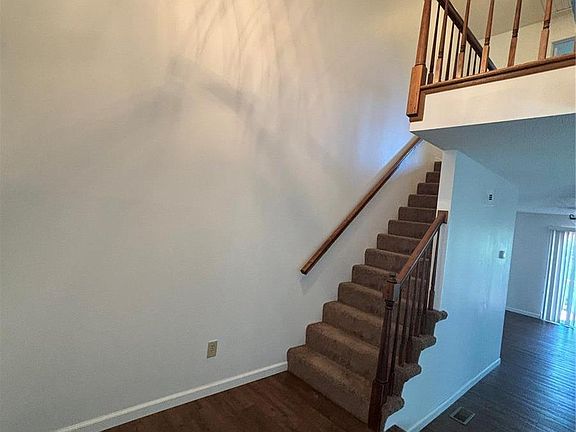 This charming townhouse offers two-car garage and a full basement. The main level features newer laminate wood flooring throughout, with a great room that boasts a lovely brick wood-burning fireplace. The great room seamlessly flows into a spacious kitchen and breakfast room, which offers plenty of cabinets, counter space, stainless steel appliances, and a convenient walk-in pantry. The dining room walks out to a large private deck. Additionally, there is a half bath on main level. Upstairs you'll find two sizable bedrooms and a full bath. The unfinished lower level offers private laundry hookups and a rough-in bath. The property also includes an oversized two-car garage and backs to trees. Notable features of this home include new kitchen appliances, HVAC, and flooring in 2021 as well as a new garage door insulated in 2022. Location: Interior Unit, Upper Level