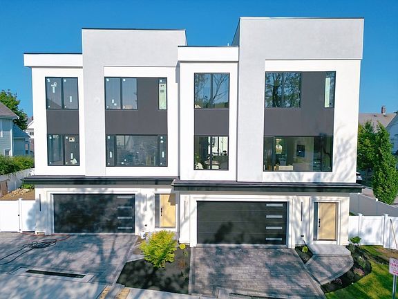 Welcome to the brand new construction at 39 Stearns St, Waltham, the first modern villa-style town house ever available in the town. It locates just steps away from the famous Moody Street, with all summer markets, bars, restaurants, and nightlife, all within 5 min walk radius. Two brand new public parks are just one block away, including a water feature park. It is also 5 min drive to access I-90 and Route 20. This townhouse offers 3 levels of the finished space. It features a two-car garage with 10 feet ceiling, wide open with a high-end metal garage door with a custom slim side frosted window. All interior walls are filled with soundproofing insulation. The first floor features an office/ bedroom and a powder room, 2nd the floor have a full open concept space with massive Anderson 400 series picture windows and high-end European-style cabinets with a waterfall countertop. 3rd floor offers 3 bedrooms with all en suite bathrooms, massive windows, skylights and more.