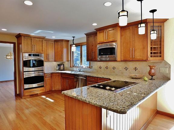 - Kit Dscrp: Dining Area, Flooring - Hardwood, Countertops - Stone/Granite/Solid, Cabinets - Upgraded, Kitchen Island, Stainless Steel Appliances, Open Floor Plan, Recessed Lighting, Remodeled