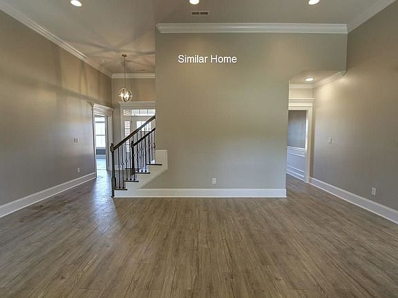 Upgrades Included in price:Larger pie shaped lot.Gas Cook Top with Double Oven Package.Soft Close Cabinets.Quartz in the Kitchen.Under cabinet lights.The Timber Ridge Plan B is a two-story home with 3 car side entry garage and is backed by a 2-10 home warranty.. Home has 4 bedrooms (Master bedroom is downstairs), 3.5 baths, study and bonus room. Three bedrooms and a bonus room (or 5th bedroom) are upstairs along with 2 baths. Home has wood plus flooring (Mohawk Revwood) in all living areas and bedrooms. Great Room features 12' ceiling, extensive trim, gas-log fireplace with upgraded fireplace treatment, wood plus flooring and recessed lights and ceiling fan. Study features 12' ceiling, extensive trim, wood plus flooring and walk-in closet and has a half bath next to it -could be a 5th bedroom or a nursery. Dining room has 9' coffered ceiling, wood plus flooring, extensive trim including shadow box under chair rail. Kitchen includes 9' ceiling, custom cabinetry granite countertops, large island with bar seating, stainless appliances including gas cooktop and wall oven, tile backsplash, wood plus flooring, recessed lighting, and huge walk-in pantry. Breakfast has 9' ceiling, tile or wood plus flooring and extensive trim. Master bedroom has 11' double tray ceiling, wood plus flooring, recessed lighting, extensive trim and ceiling fan. Master bath has 11' ceilings, glamour tub, large tile shower with tile bottom, two shower heads and rimless shower door, separate toilet are