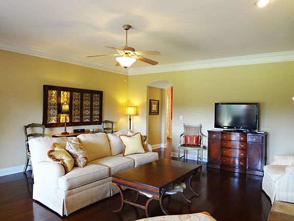 Many extras throughout include extensive trim and hardwood floors in all main living areas. Entry foyer has barrel ceiling and walk-in coat closet. Formal dining room; huge great room with two 5-foot windows and gas log fireplace with stone surround. Beautifully tiled kitchen with pantry, breakfast bar, and bay windows in breakfast area. Master bedroom boasts boxed ceiling. Enormous master bath with corner garden tub, separate tiled shower, water closet, split vanities, and walk-in closet. Two additional large bedrooms downstairs; one features sloped ceilings and the other has arched double windows. Massive 572 sq. ft. bonus room upstairs with separate A/C unit, two closets, walk-out attic storage, and a full private bath. Over-sized double garage with storage room. Exterior features front and back porches with columns, stone facing, gutters, in-ground sprinkler system, and privacy fence. Zoned for the highly desired Redland school and walking distance to daycare.