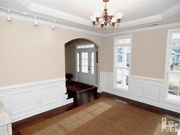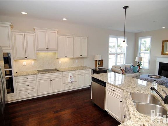 The Blue Ridge, Exquisite Model Home of American Homesmith l two Story Home l 4 Bed l 2.5 Bath l 2771 sq ft per plan l Master Bedroom Upstairs l Granite Countertops with Ceramic Tile Backsplash l Painted kitchen Cabinets l Under Cabinet Lighting l Stainless Steel Appliances l Formal Dining and Breakfast Nook l Island with Bar Area l Hand-Scraped Hardwood Floors in Foyer, Family Room, Dining Room, Kitchen, Breakfast Nook, Upstairs Hall and 3rd Bedroom l Hardwood Stair Treads l Ceramic Tile Flooring in Laundry Room, Master Bath and Secondary Bath l Recessed Lighting l Covered Front and Rear Porch l Patio l 2 Gas Log Fireplaces l Oversized Walk-In Closets in Master Suite l Dual Vanity Sinks with Cultured Marble Countertops l Garden Bath Tub with Tile Surround l Tile Shower with Tile Base
