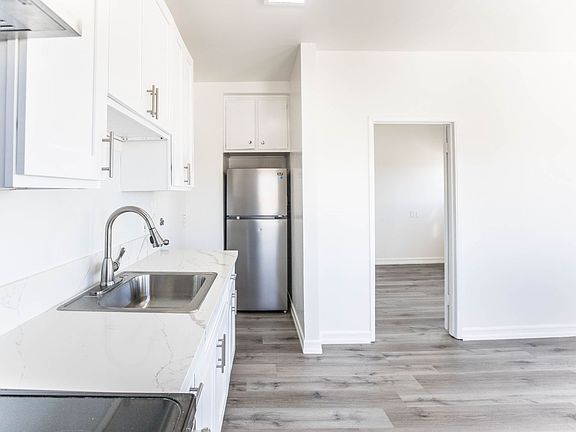 Full kitchenBrand-new modern flooringBeautiful white granite countertopsStainless steel refrigeratorBrand-new kitchen cabinetsNew double-pane windows