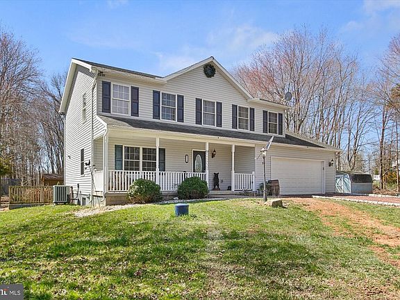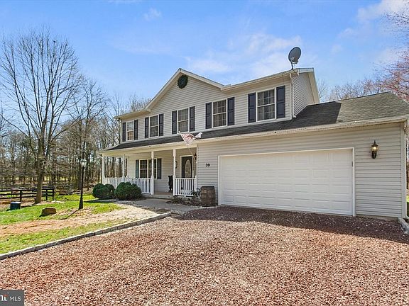 So much to love about this peaceful, quiet, secluded 6.5 acre homestead property . This colonial features 4 bedroom, 2.5 bath, 2 car attached garage, front porch, rear deck and patio, raised garden beds, and detached man cave complete with woodstove. First floor living room and family room w/gas fireplace. Recent updates include cleared 5 acres of underbrush, installed 8- 1/10 acre paddocks w/electric fencing, installed water and electric to pasture, cleared area for garden, installed foot bridge across stream, installed posts for another acre, built bar in outbuilding, built chicken coop, new water heater and sewage pump 2022, all new appliances except stove, new kitchen sink with built-in cutting board, installed gravel and edging to driveway, cleared small area for orchard and planted 2 apple and 2 peach trees, built large 40' x 50' raised bed garden with running water to each raised bed. Property also has horse run-in with tack room and paddocks with water/electric. Chicken coops could be converted back for another run-in. Current owner has pigs, chickens and used to have cows and goats. Previous owner had 2 horses. Outbuilding with owners eyelash business in it does not convey. It will be removed.