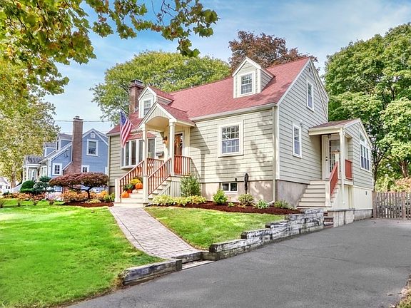 Beautiful Cape brimming w/custom features & details in a bucolic Mount Hood neighborhood! Custom built bookcases flank the FP in the LR & a large bay window offers great views.The eat-in KIT has an addition that has created a wonderful open floor plan & features a 1/2 vaulted ceiling w/a bank of windows that bathes the space in light & also features floor to ceiling pantry cabinets, a built-in desk and a door to the deck. Granite countertops, tile backsplash, breakfast bar w/pendant lights & pretty cabinets make this KIT a joy to cook & entertain in. The FR would also work well as a BED and a full BTH w/granite vanity complete this level of the home.Three BEDS w/generous closets & a 1/2 BTH on the second floor. The LL media/playroom is ideal for movie or game night & all three levels of the home enjoy CA. Nice fenced in rear yard, excellent access to MT. Hood Golf Course, Melrose Common, bus to the commuter rail or T Station. This home is turn key and will not last.